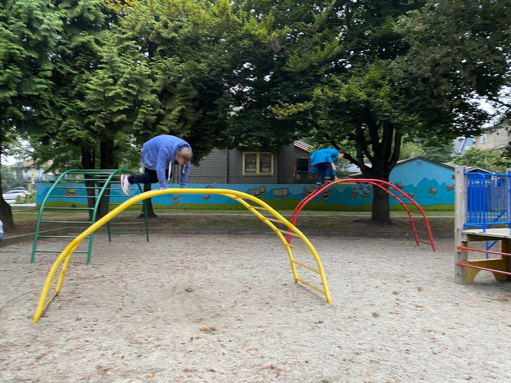 Meanwhile, Collinwood Park screams out the 1970s: a crunchier era of Vancouver, less grand but quickly growing. There’s an old-school field house with washrooms, a very simple basketball court, and a giant slide with multiple humps and minimal railings on the side, the type that very much would not get constructed today for perfectly reasonable safety reasons.