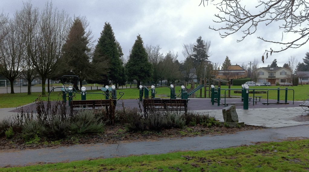 Among those parks, Tisdall is one of the best — a sprawling, peaceful park, with plenty of big, leafy trees. With no slopes and no views, the overall feel is decidedly not Vancouver (for whatever reason, multiple people in our group felt Montreal vibes), but the field, shady area and basic but fairly modern playground are all separated nicely, and all do what they need to. There’s also an exercise area next to the playground, with a good number of contraptions for some light cardio. We came here twice during our research; both times there were plenty of people relaxing, neither time was it particularly full.