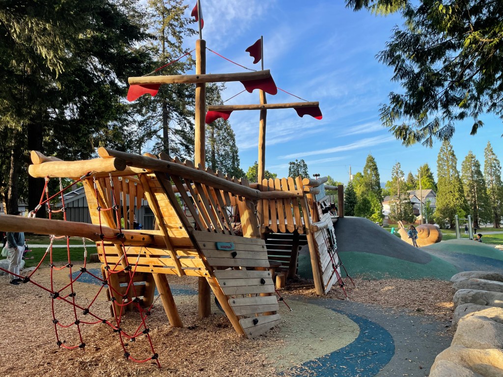 And Hastings Mill has a big grassy feel, in good enough condition that you can easily layabout if you want to avoid bigger crowds to the beaches immediately west, but not big enough that a game of soccer will appear around you. The all-wood playground is more “interesting” than “fun”, but there’s quirky art surrounding it, and you have the heritage factor of the oldest building in the city right inside the park (the former store for Hastings Mill, moved and repurposed into a museum in the 1930s).
