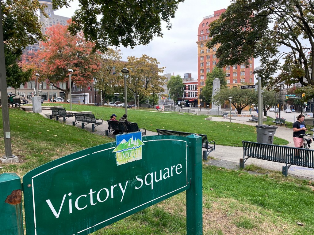 Let’s start by acknowledging that as a park, or even a public space, Victory Square is somewhat limited.
