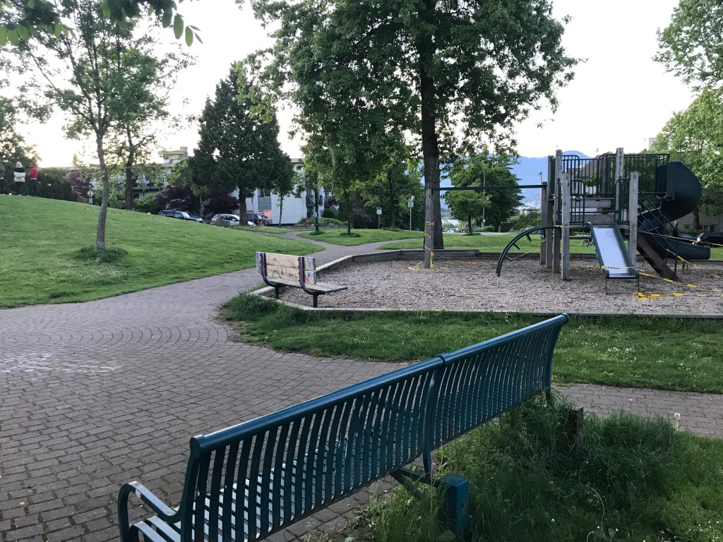 The park occupies a former single-family lot on Manitoba just off 11th Avenue, and has a small modern playground good for 3 to 6-year olds. There’s also a cute gazebo in the corner that can fit one or two people, and a decent sized lawn in between.