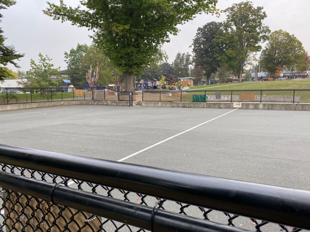 The downtown park is packed with things to do: two play areas for two different age groups on different sides of the park, tennis and basketball courts, and public restrooms. Most prominently, there’s the large field in the middle, big enough for dozens of small picnics and barbeques and badminton matches to be happening at the same time.