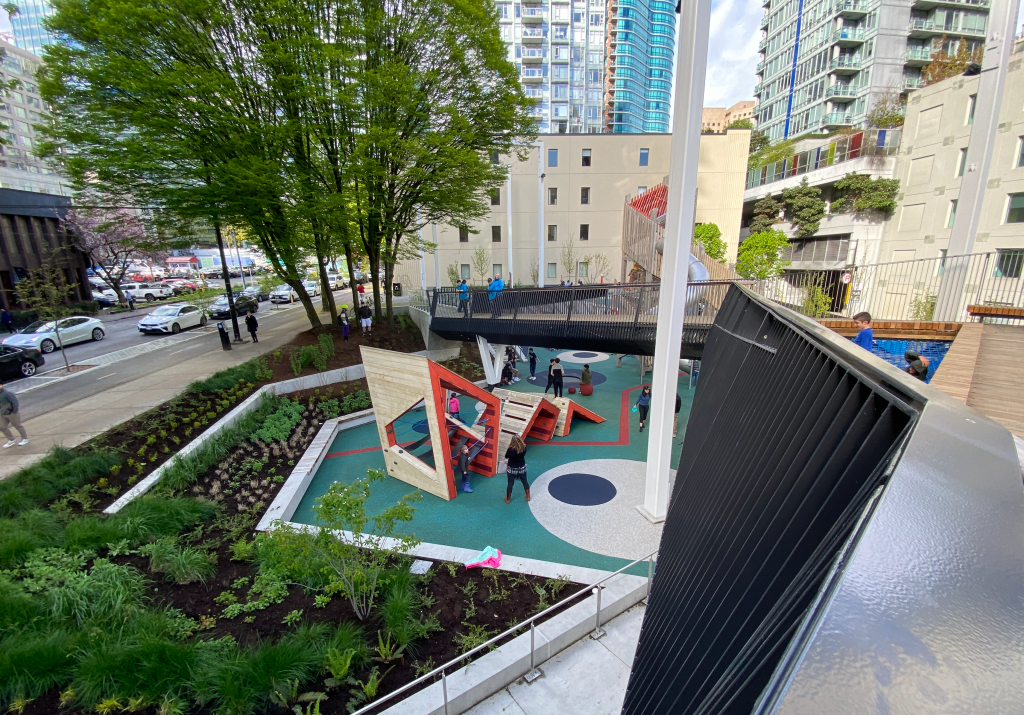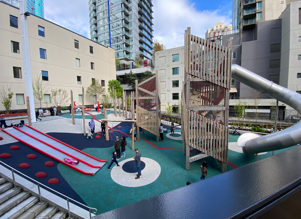 If we were to express a concern — beyond the fact there’s not much for adults to do beyond getting a coffee and watching their kids — is that it’s a park that will require constant maintenance, from the intricate playground equipment to the heavy usage it will get due to its Downtown location.