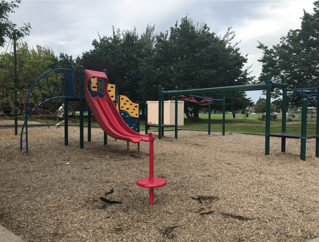 It’s a solid fields/playground/wading pool/washroom combo, with good grass for the fields and trees separating each section quite nicely. The playground is quite good, with ample swings, slides, and climbing areas, and there’s also a basketball court and a couple of larger trees that are good for climbing or hiding in.