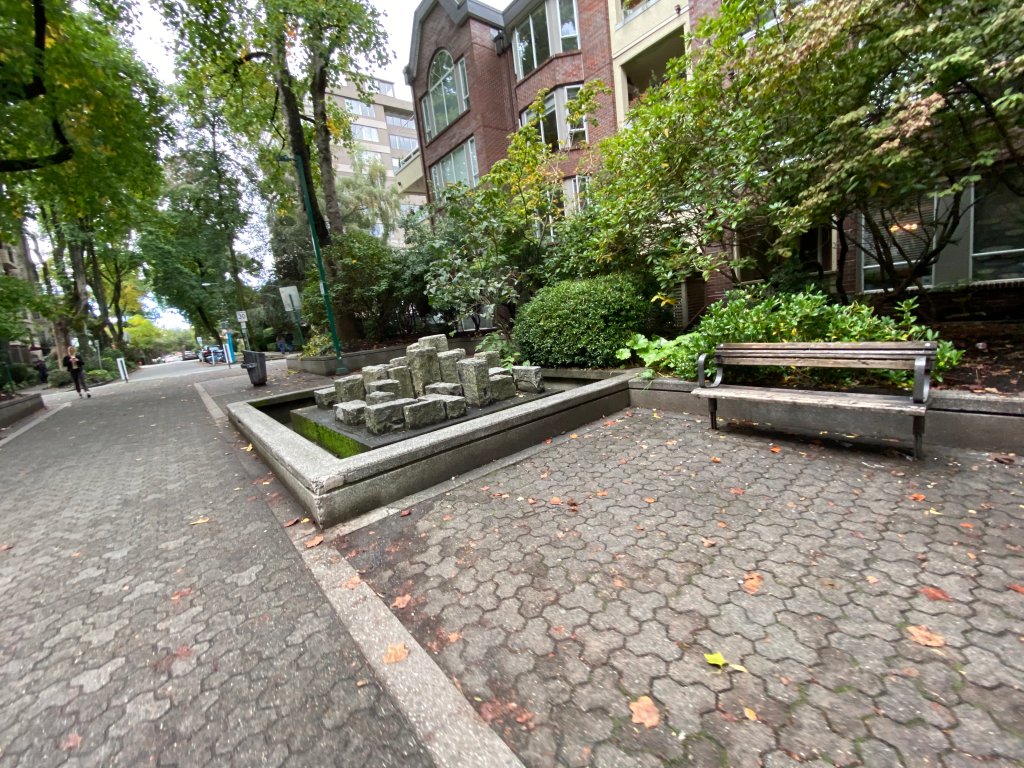 There’s also a quirky rock structure, which provides something to look at or climb if you’re a small child, and the requisite garbage cans and streetlights.