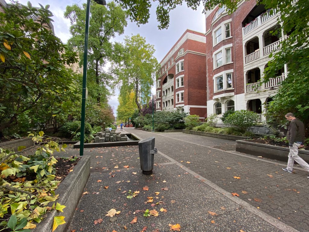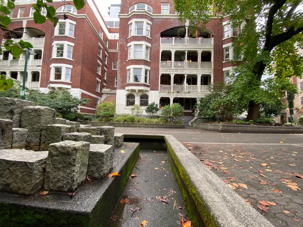 This one goes by The Beaconsfield, a 1909 structure that was “one of the first large apartment blocks to be built in the West End”, according to the Vancouver Heritage Foundation, and still providing an imposing brick facade to this day.