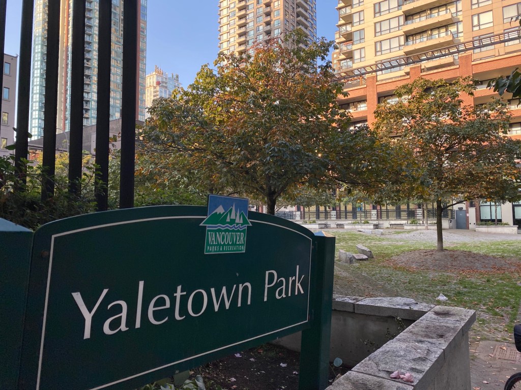 When the city approved the park, at a cost of around a half million dollars (with a developer paying the rest), it said “it will be a precious little space that is attractive for a sunny lunch break, for a cup of coffee, or for meeting up with a group of friends. Yaletown activities will reach into this park with programmed events like farmers’ markets, sidewalk sales, outdoor art exhibits and installations, or intimate musical and theatrical performances.”