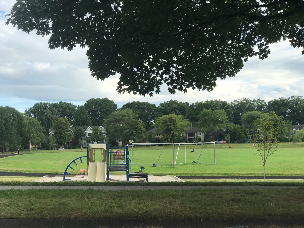 Aside from the running track, there’s a regular baseball field, a simple play area for toddlers, washroom facilities and an off-leash dog area in the middle.