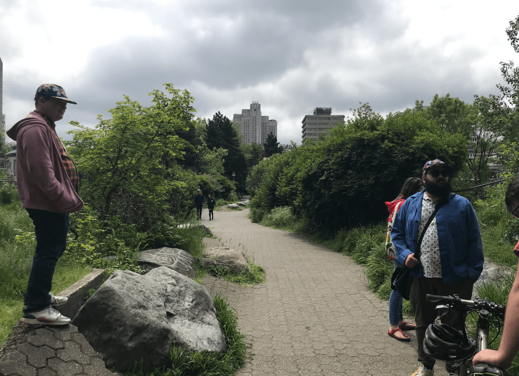 And really, it’s little more than a green walkway for 100 metres or so, but it’s a unique design, with rocks jutting out in the middle and enough of a winding path that makes it seem juuuust natural enough, a sort of mini NYC High Line. The plants on either side help block out some of the noise, but are open enough to provide unique views of the corridor.