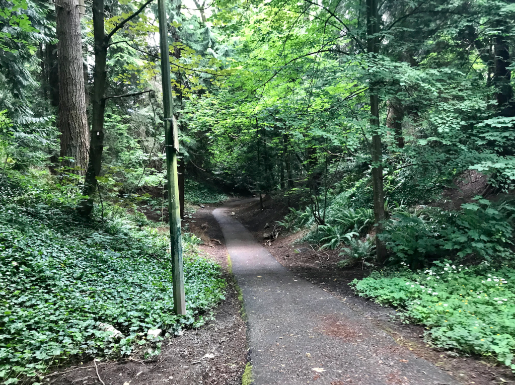 A simple yet somewhat secret park in the middle of the city, Ravine Park sneaks along three blocks between Yew and Arbutus from 36th to 33rd Avenue, and delivers a walk through a simple ravine. Tall cedars and large ferns are everywhere, blocking noise, and the walking path is paved well enough that people of all abilities can enjoy the sights of nature.