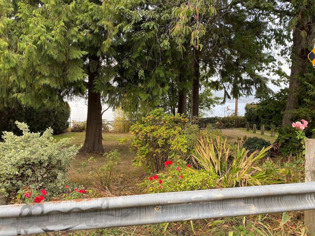 A few flowers and bushes separate the road from the rest of the park, giving it a secluded feel. Trees dot the tiny park in a way that gives it a more magical quality than some of the sparser park sites. The benches all face the ocean and provide a wonderful view of Lions Gate Bridge and the north shore.