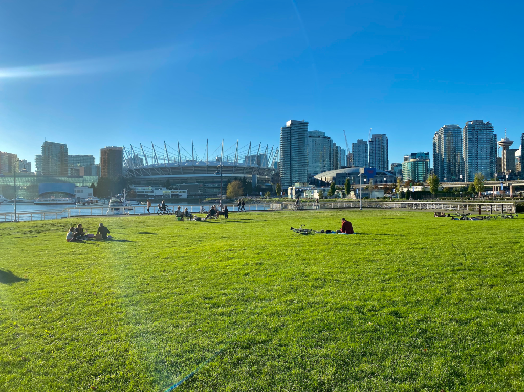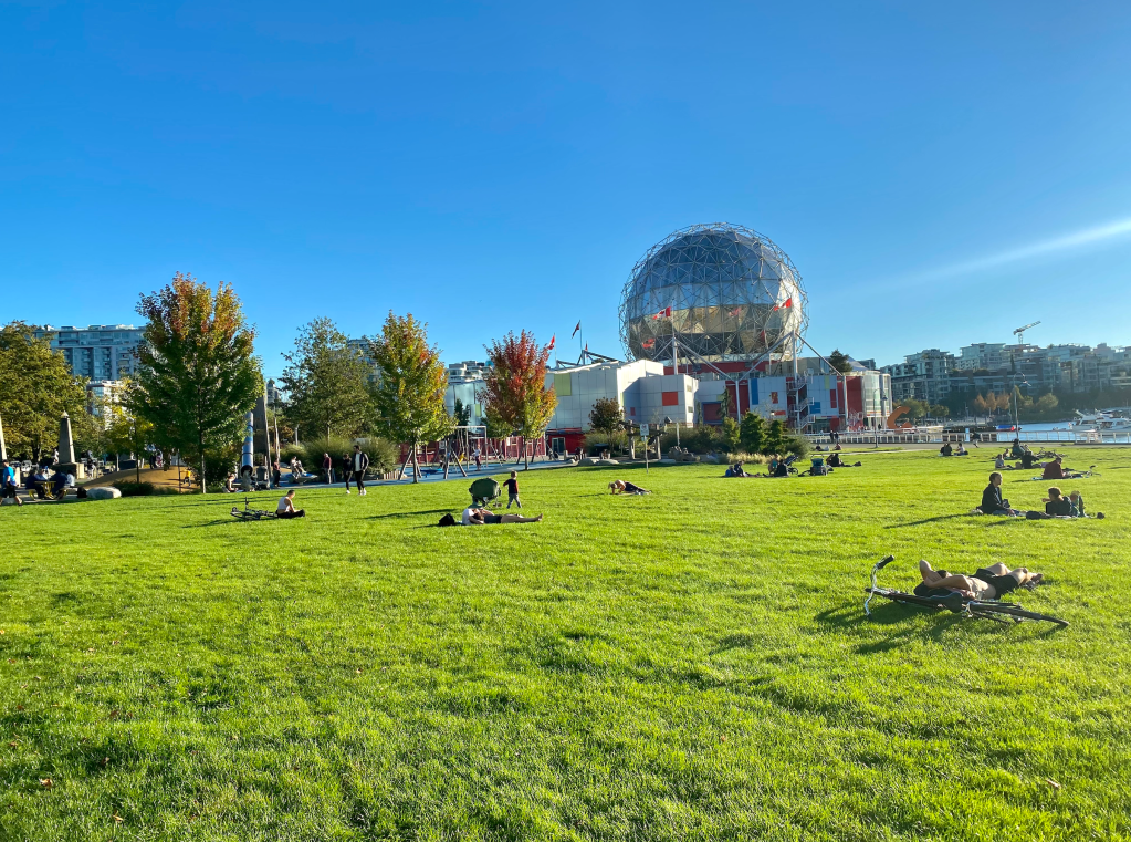 The limited space is well-designed though, particularly how the bike path loops behind the park. And on a summer night, with the sun setting slowly behind Science World, False Creek, downtown, and the expanse of ocean behind it all?