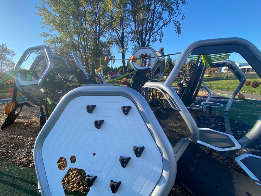 And at the middle of it is a unique, space-themed playground, with little climbing walls and areas for kids 3-8 to squirm through. It’s not a big playground but it encourages creative play in a great way, and a nice bit of diversity from the standard slide/swings/climbing structure starter pack seen in most south Van parks.